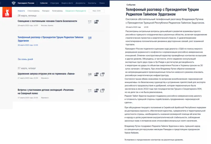 «Украина, Сирия и Чёрное море»: Эрдоган и Путин провели телефонный разговор