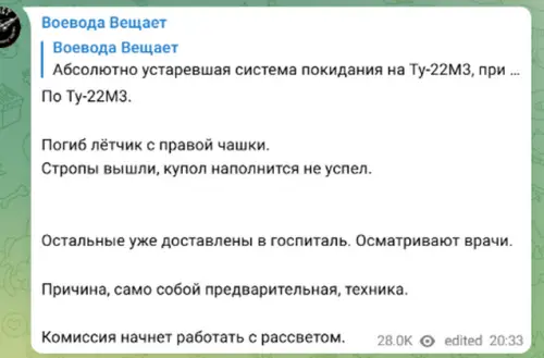 Минобороны подтверждает данные о крушении Ту-22М3 при выполнении им планового полёта.