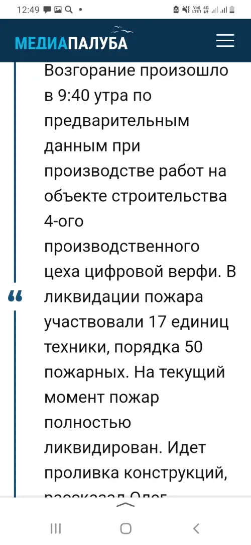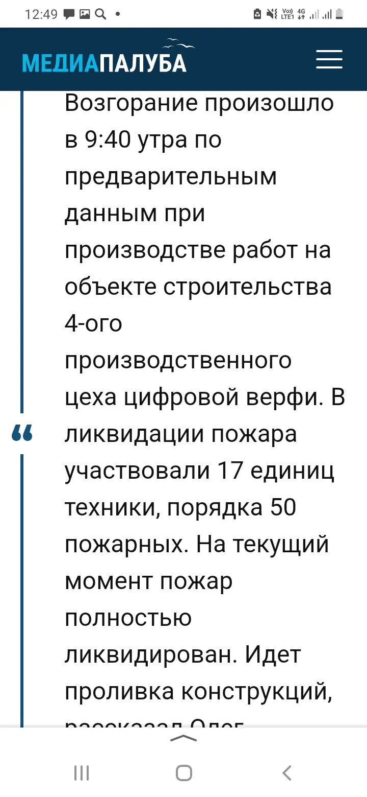 С судостроительного завода в Карелии поступают сообщения о взрыве и пожаре