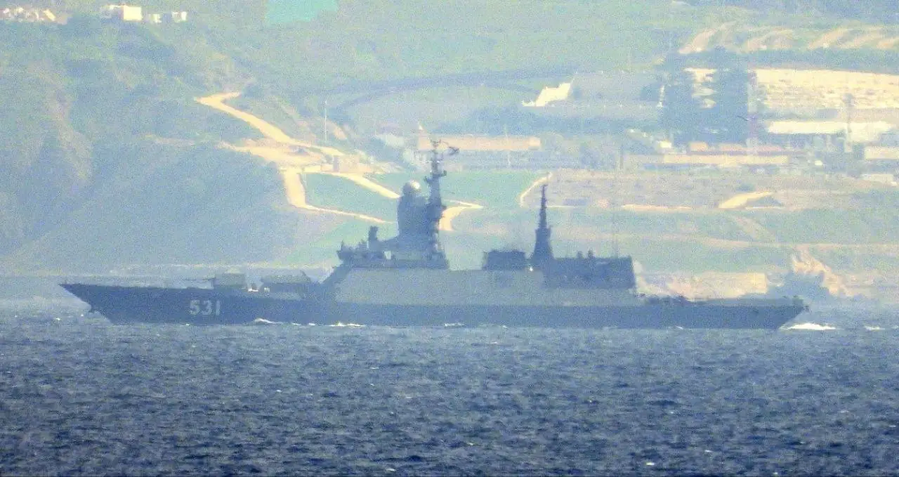 Корвет «Сообразительный» проходит Гибралтар, 25 апреля 2025 года. Фото: телеграм-канал «Оперативная линия»
