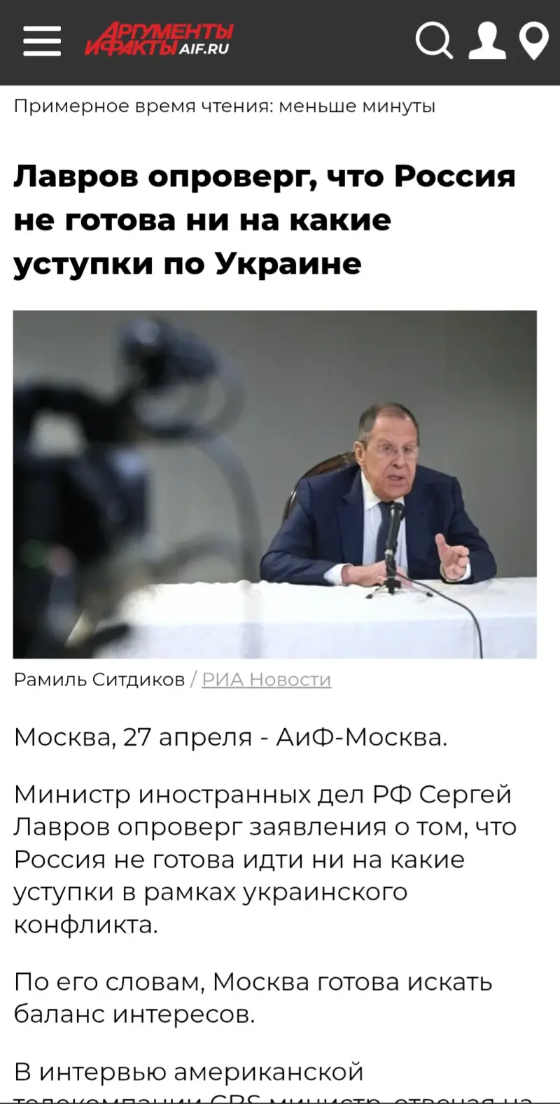 Российский министр опроверг утверждение американского журналиста о том, что Москва якобы получила предложение от Вашингтона о передаче Запорожской АЭС под совместное управление США и Украины. По словам Лаврова, никаких предложений по ЗАЭС не было, а если поступят, то Россия объяснит, что изменения в подконтрольности станции невозможны. Как подчеркнул глава МИД, атомная станция находится в «надежных руках».