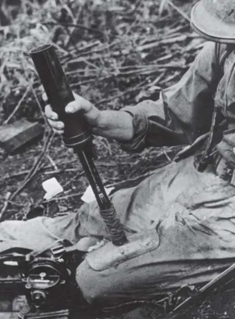 Обычно пишут, что этот миномёт якобы переносился японскими солдатами прикреплённым ремнём к ноге, отчего сами японцы называли его «коленный миномёт».