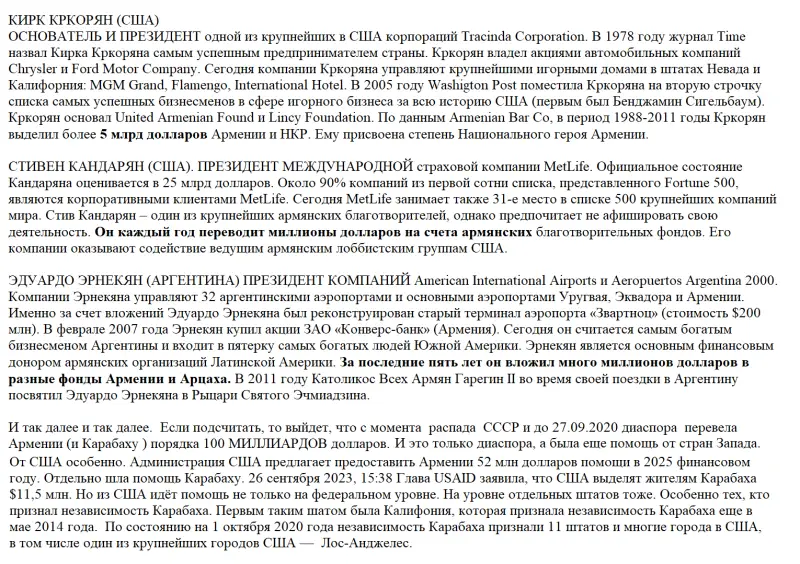 По словам автора, Армения в 2021 году оплатила крупный заказ на российское оружие, но якобы так и не получила необходимую матчасть в полном объёме. Также он выдвигает против Москвы нелепые обвинения в «безразличии к агрессии Азербайджана».
