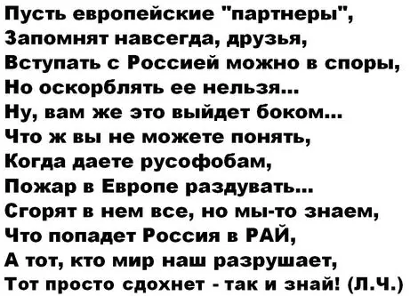 Комиссар по обороне и космосу в ЕК, естественно, литовского происхождения, Андрюс Кубилюс заявил, что в случае достижения перемирия между Киевом и Москвой Россия использует эту паузу для накопления оружия, чтобы «напасть на Европу».