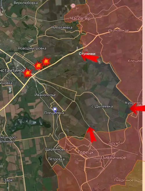 Одновременно с этим российские войска продолжают продвижение к Константиновки сразу с нескольких направлений. После освобождения нашими бойцами Малиновки и расширения зоны контроля на дороге Покровск-Константиновка у противника остаётся существенно меньше логистических возможностей на этих стыкующихся направлениях. На сегодня последним крупным транспортно-логистическим маршрутом для ВСУ в Константиновке и Ч.Яре является дорога Н20, ведущая со стороны Дружковки и Краматорска.