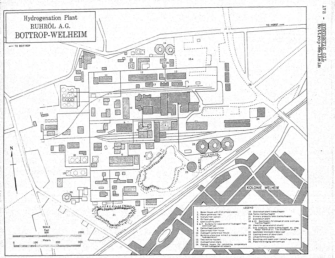 Схема завода Ruhröl GmbH в Боттроп-Гельзенкирхене по состоянию на 1944 год