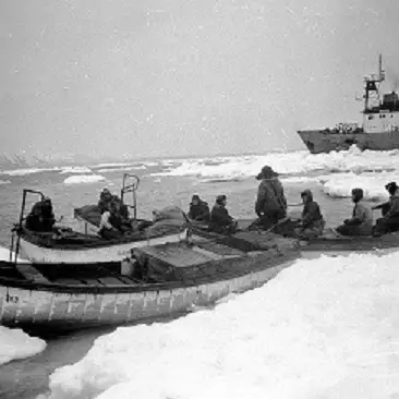 Во флотилии их было десять. Вышли мы в апреле, зашли в Холмск, получили снабжение, оружие, патроны и пошли Лаперузом в Охотское море бить зверя: лахтак, ларга, акиба. На шхуне было пять фангсботов, по три человека промысловиков, остальные работали на борту. Каждые два часа боты выходили на связь, докладывали обстановку, связь держали по портативной радиостанции «Недра-П». Хорошая была радиостанция, частота 1740 Кгц. При хорошем прохождении связывались с другими шхунами за 200-300 миль.