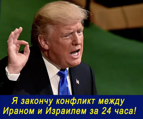 Американский лидер дает понять, что он занимается остановкой конфликта между Ираном и Израилем, в настоящее время проходит множество встреч и телефонных звонков по данному поводу. По словам Трампа, обе стороны должны остановиться и «заключить сделку». Кроме того, президент США уверен, что ему удастся помирить Тегеран и Тель-Авив, поскольку соответствующий опыт у него уже имеется. Как подчеркнул Трамп, он установил мир между Индией и Пакистаном, Сербией и Косово, а также Египтом и Эфиопией.
