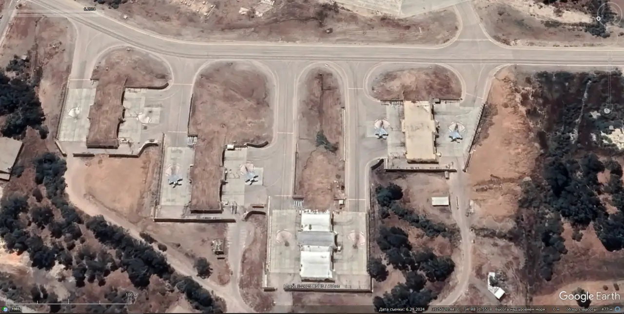 Спутниковый снимок Google Earth: дежурные израильские истребители F-15 на авиабазе «Тель-Ноф». Снимок сделан в июне 2024 года