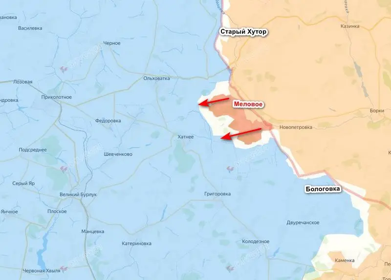 Ранее сообщалось, что ВС РФ активизировались на границе Белгородской и Харьковской областей, в движение пришел участок ЛБС от Старого Хутора Белгородской области до Бологовки Харьковской шириной свыше 20 км. Само Меловое накануне взяли бойцы 83-го мотострелкового полка 69-й мотострелковой дивизии при поддержке штурмовиков 72-й мотострелковой дивизии 44-го армейского корпуса.