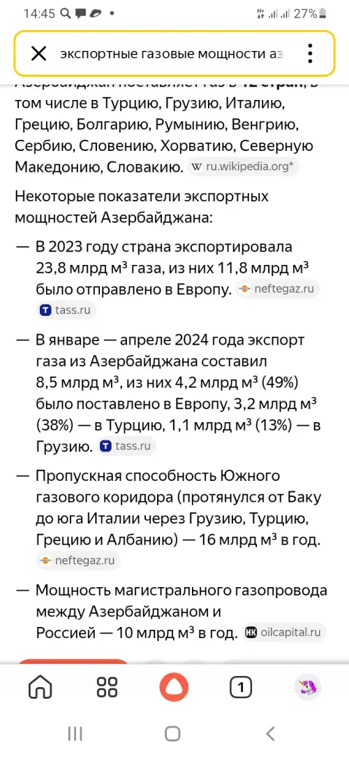 Кроме того, стороны обсудили поставки на Украину этого самого азербайджанского топлива. Киев называет это шагом к «международному формату сотрудничества». Однако при этом не упоминается, каким образом Киев и Баку планируют проложить маршруты поставок газа на Украину без участия России. Кроме того, при попытках Киева при поддержке Брюсселя вытеснить российский газ с европейских рынков и заменить его азербайджанским, очевидно, не учитывается, что Азербайджан попросту не располагает необходимыми для этого объемами.