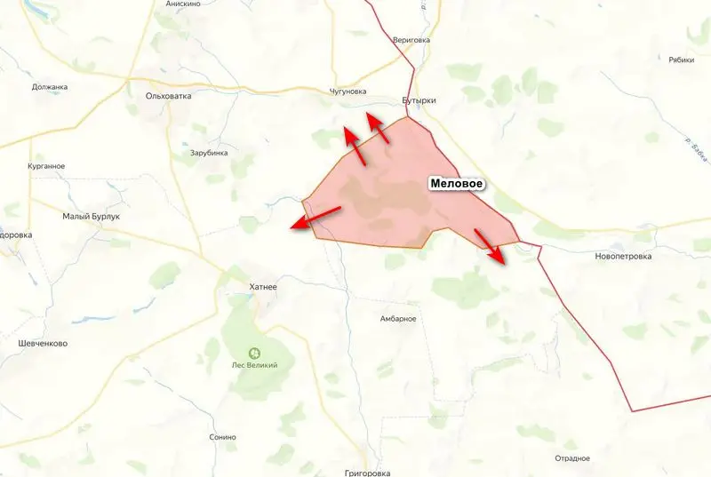 В районе населенного пункта Меловое Харьковской области нашим военнослужащим удалось продвинуться как севернее, так и южнее от данного населенного пункта. Вклинивание в оборону противника на данный момент здесь составляет почти 6 км, а ширина фронта — около 7 км. Таким образом, можно говорить о расширении плацдарма на данном участке местности для дальнейшего продвижения наших войск.