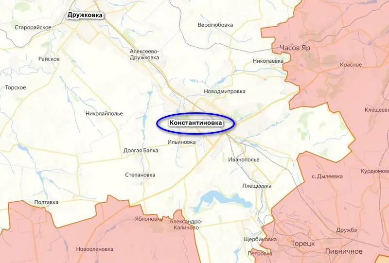По версии украинского военного, ситуация под Константиновкой критическая, пока формирования ВСУ еще держатся, но это долго не продлится. Российские войска наступают сразу с нескольких направлений, особое беспокойство вызывает продвижение ВС РФ к юго-западу от Константиновки, угрожающее отрезать город от Дружковки и взять его в окружение.
