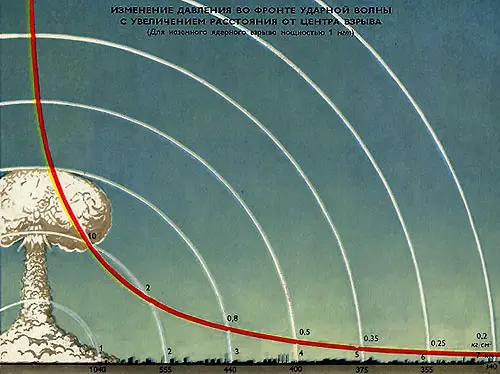 В рассекреченном докладе посла Японии в СССР сказано, что на расстоянии 5-7 км от станции Хиросима практически все здания были разрушены, уцелели только железобетонные конструкции. В докладе отмечается, что листва деревьев была опалена неравномерно, часть людей получила сильные ожоги, а часть вовсе не пострадала. Авторы пояснили, что это дает основание предположить, что энергия бомбы излучалась не сплошной массой, а пучками, в результате чего остались непораженные участки, однако это на удалении от взрыва. В радиусе же одного километра от взрыва уничтожено всё живое.