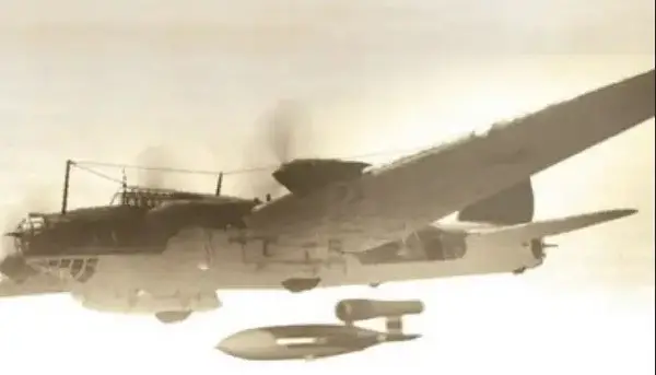 Запуск самолёта-снаряда 10Х с бомбардировщика Пе-8