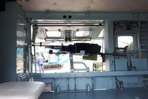 Изделие ГУВ-8700 без головного обтекателя. Видны два пулемёта ГШГ-7,62 и крупнокалиберный ЯкБ-12,7. Фото Airwar.ru