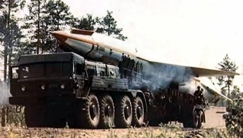 Беспилотный разведчик Ту-123 в стартовом положении на пусковой установке СТ-30