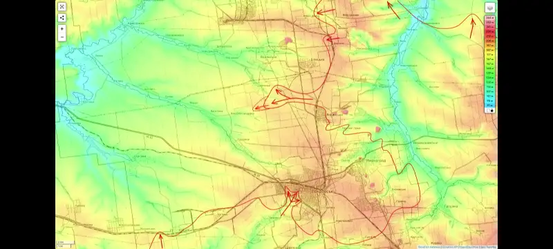 Довольно интересная информация поступает по ситуации к северу от Покровско-Мирноградской (Красноармейско-Димитровской) агломерации, которую наши войска постепенно обходят с флангов и берут в полуокружение.