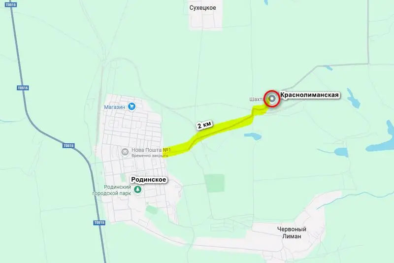Шахта «Краснолиманская» находится к востоку от Родинского, на расстоянии примерно 2 км от окраины города. Контроль над ней позволит войти в Родинское большими силами.