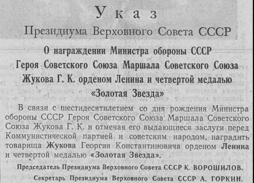 Жуков был выходцем из бедной крестьянской семьи, никогда не имел высоких покровителей, но благодаря своим талантам и стальной воле стал самым выдающимся и известным советским маршалом. Стал в годы войны заместителем Верховного Главнокомандующего, министром обороны, членом высшего военно-политического руководства СССР, четырежды Героем Советского Союза, кавалером двух орденов Победы и множества других советских и иностранных орденов и медалей. Георгий Константинович не совершил ничего подлого, не унижался перед высшим руководством. Навсегда остался народным Маршалом Победы.