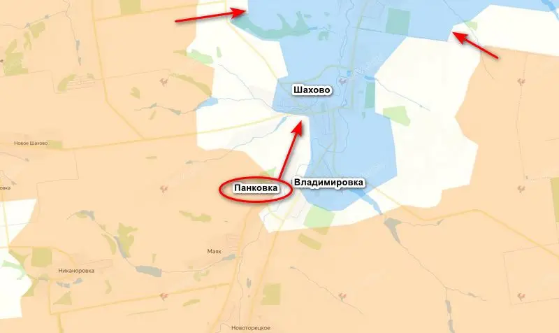Отсюда и важность взятия Панковки, которая практически выходит к Шахово. Правда, параллельно идет еще Владимировка, в которой тоже засел противник. Враг, понимая важность Шахово, упирается изо всех сил, пытаясь не пропустить наши войска к этому логистическому узлу.