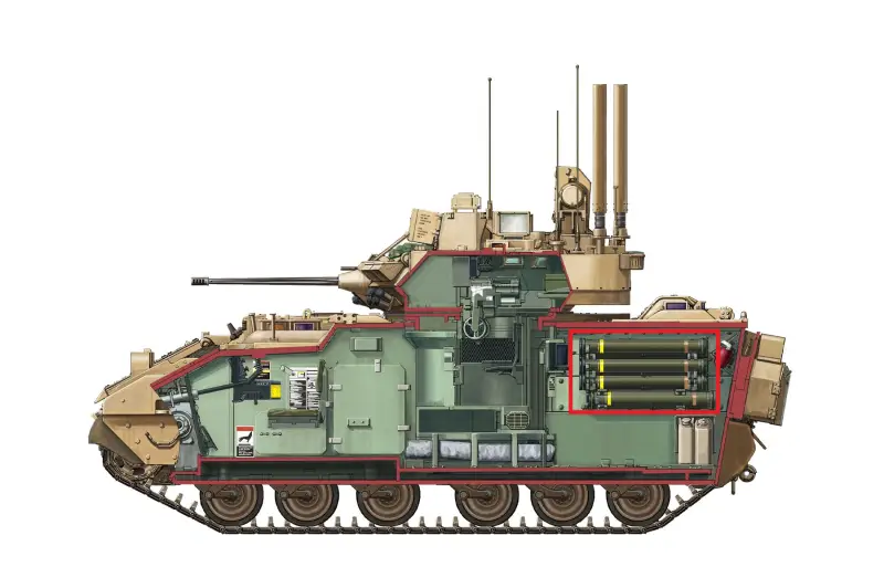Боевая машина пехоты США M2 «Брэдли» создана во второй половине 1970-х годов с учётом опыта боевого применения советской БМП-1, конструктивных особенностей германской БМП «Мардер» в качестве лучше защищённой и вооружённой замены бронетранспортёрам M113. Принятая на вооружение в 1981 году БМП М2 «Брэдли» не отличалась излишним весом (22,3 т), она была на целых десять тонн легче последней модели немецкой машины и в то же время более чем на семь тонн была тяжелее новой советской машины БМП-2 (14,7 т), принятой на вооружение СА 15.10.1980 года.