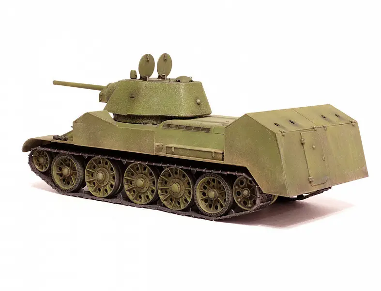 Возвращаясь к автономным пулемётным установкам, на ТБМП есть возможность расширения углов обстрела за счёт применения на машине танковых гусениц шириной 580 мм (на БМП-3 это значение 380 мм), а значит, и более широких надгусеничных полок корпуса. В боевом положении пулемёты на БМП-3 имеют углы склонения и возвышения -5 и +15 градусов соответственно, в горизонтальной плоскости углы обстрела составляют: в сторону борта 5, от борта 30 градусов. На ТБМП, не меняя углы по вертикали, расширяем горизонтальные углы в сторону борта до 8 градусов и в сторону от борта до 34 градусов. Боекомплект пулемётов по 2000 патронов на ствол.