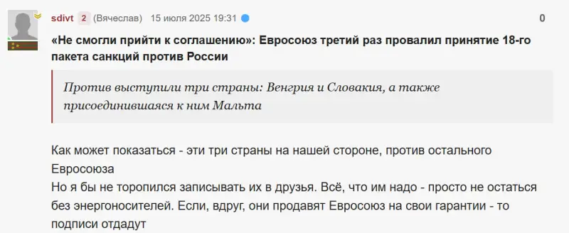 Эксперты отмечают, что новый удар по «Дружбе» - это своеобразный акт мести от командующего войсками беспилотных систем Роберта Бровди (позывной – «Мадьяр», в списке террористов и экстремистов), в отношении которого накануне Будапешт ввёл санкции. Сначала «Мадьяр» отреагировал в сети отборной руганью и угрозами в адрес венгерского высшего руководства, а затем пошёл на «материальную месть», отдав приказ о нанесении нового удара по нефтепроводу.