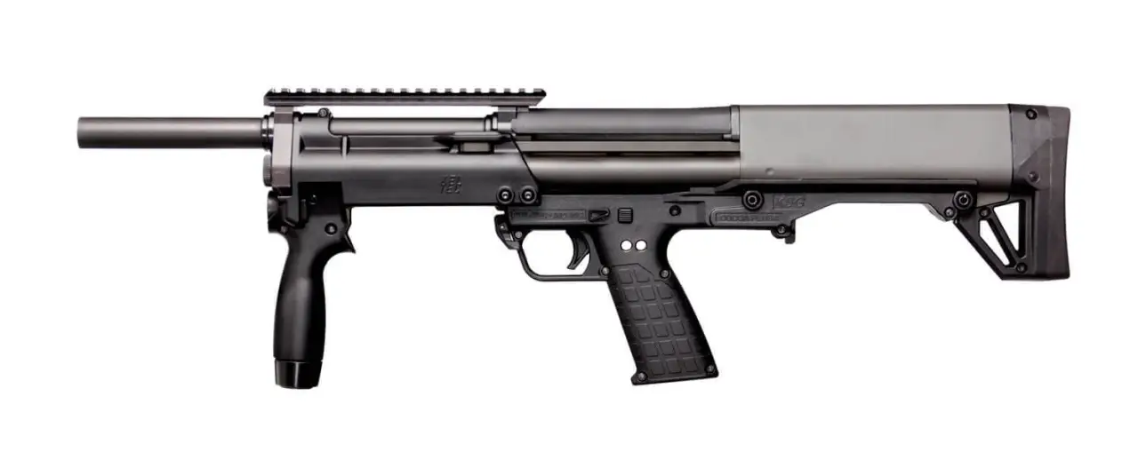 А началось всё с дробовика KSG, который стал первой фирменной разработкой для выхода на рынок дробовиков 12-го калибра. Чтобы оторваться от конкурентов, инженерам фирмы пришлось полностью переосмыслить всё его устройство и установить новый стандарт как по вместимости магазина, так и по общей длине. На сегодня KSG разрешён к использованию во всех 50 штатах и вмещает 6+6+1 (или 7+7+1 в зависимости от длины гильзы) патронов в магазине. В стандартной комплектации он оснащен еще и планками Пикатинни для установки различных аксессуаров как сверху, так и снизу. Весит дробовик без патронов 3,1 кг. Общая длина его — 663 мм. Длина ствола — 470 мм. Емкость магазина 7+7 (причем на дробовике их… два!). Розничная цена на сегодня: $845.