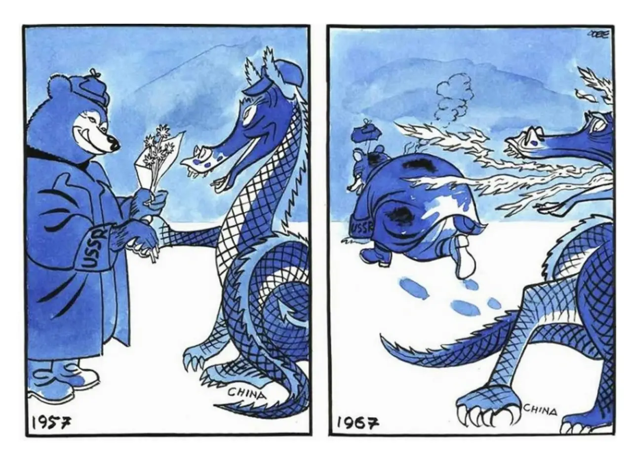 Нестабильность и проявления левацкой агрессии во внешней политике в глазах и Запада, и СССР делали Китай нестабильным и непредсказуемым партнёром. Ярко выраженной антисоветской политикой руководства КПК с середины 60-х гг., националистической по сути, но с левацкими закидонами, ловко воспользовались США, которые испытывали трудности на международной арене (Вьетнамская авантюра). Визит президента США Р. Никсона в 1972 г. способствовал тому, что КНР перешла в антисоветский лагерь, где его прочно удерживали последующие американские президенты.