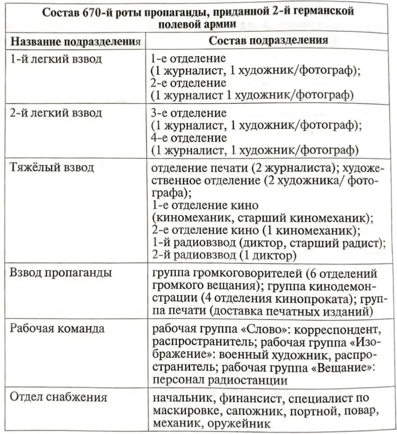 Состав роты пропаганды на примере 670-й роты. Оригинал: Bundesarchiv Bild 101I-062-2110-06.