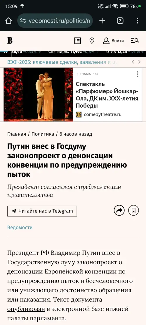 Не уподобляйтесь либерастам и европейцам. Это они вместе с вами вой подняли, представив это как узаконивание в России пыток. Прочитайте подробности по этому законопроекту, а не только приведя заголовок. Выход из этого договора не означает, что у нас будут разрешены пытки. Эта конвенция позволяла ЕС встревать в наши тюрьмы и уголовные расследования с проверками, а к себе они нас не допускали. То есть была односторонне направленной. Поэтому и решили послать Европу куда подальше. Путин четко сказал, что у нас есть свои механизмы, чтобы предотвращать незаконные действия. Но, как знать, как знать, возможно вы тоже из стана либераста Навального.