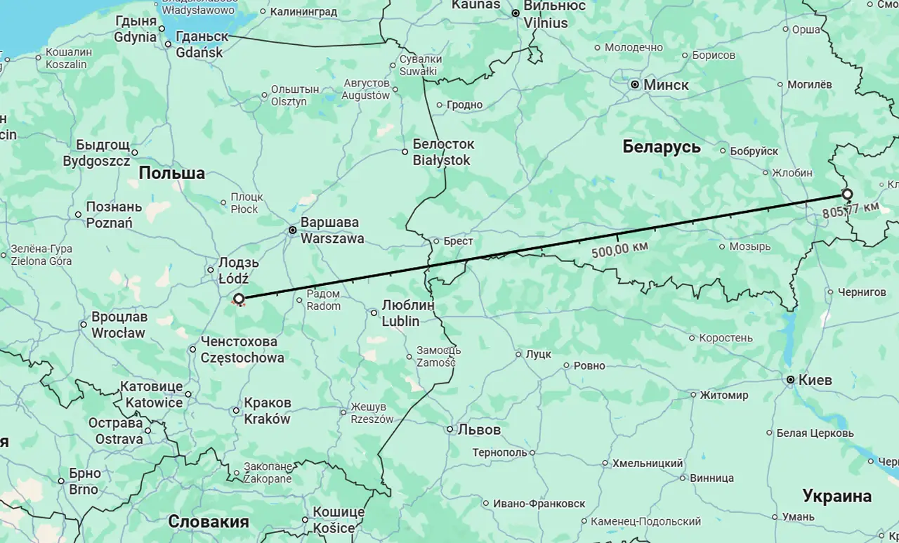 Напомню, что, согласно польской версии, наиболее ретивая «Гербера» с серией «ЫЫ» на хвосте долетела аж до села Мнишкув, что примерно в 250 км от восточной границы страны. Если допускать, что ЫЫ-«Герберка» летела исключительно по прямой линии (не отклоняясь ни на йоту) и выпущена она была, ну, прям от самой ближайшей точки «основной части» Российской Федерации (а это юго-запад Брянской области), то пролетела она, не будучи сбитой, 806 км.