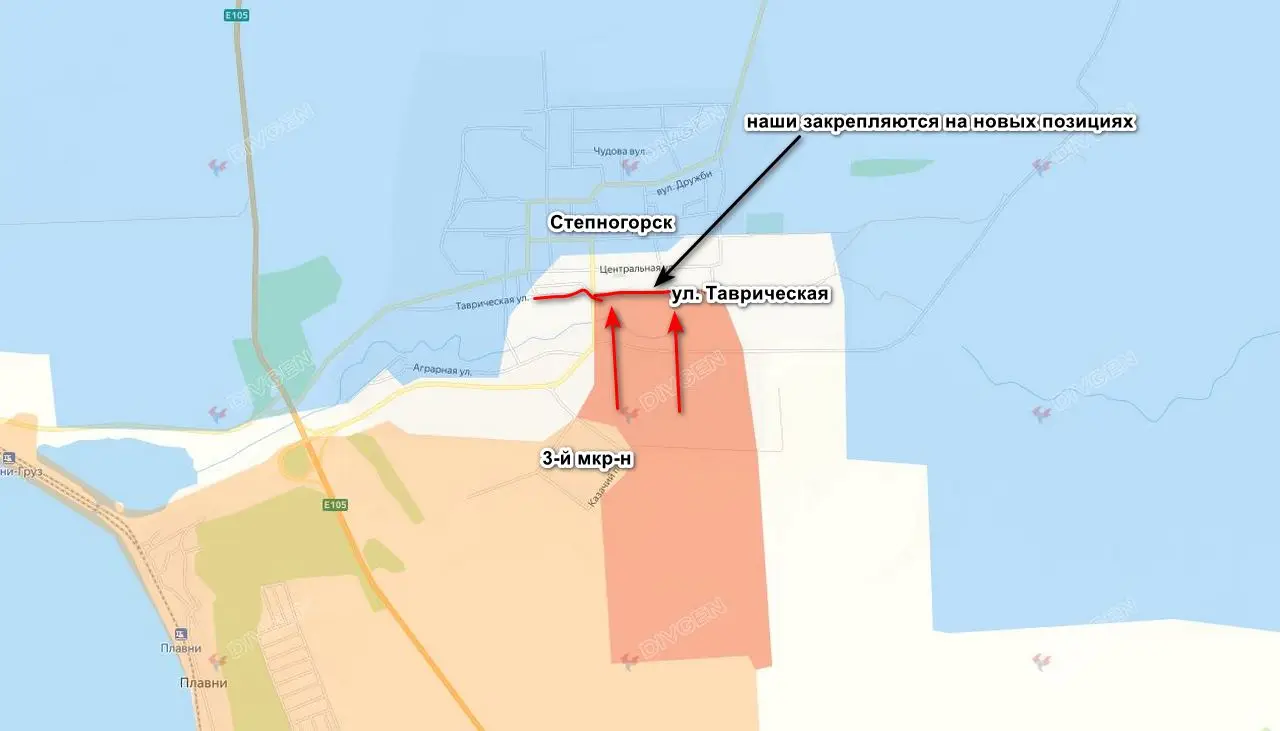 Российские войска продвинулись в Степногорске Запорожской области, несмотря на ожесточенное сопротивление противника. Об этом сообщает российский канал DIVGEN.