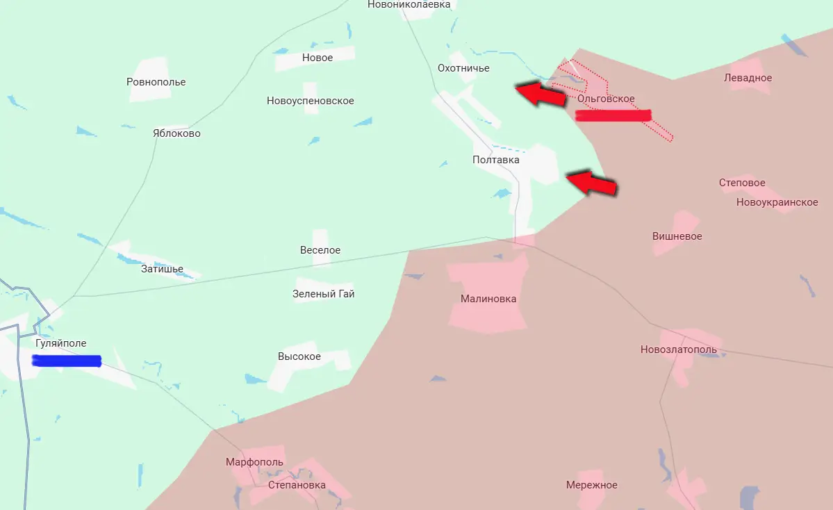 Освобождение Ольговки позволяет осуществить охват с трёх направлений достаточно обширных территорий Запорожской области к северо-востоку от Гуляйполя. Также это значимый выход к реке Солёная и приближение к реке Янчур на участке Новониколаевка (запорожская) – Полтавка. Противник близок к тому, чтобы потерять очередную свою рокадную дорогу – последнюю на подступах к Гуляйполю на данном участке фронта.