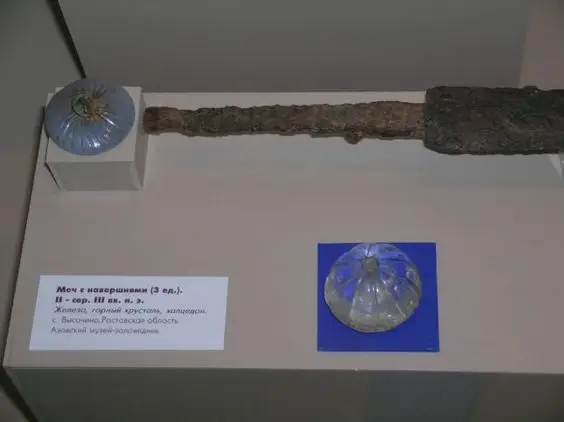 Сарматский меч с навершием из халцедона. Железноводский краеведческий музей. Фотография автора, сделанная через стекло…