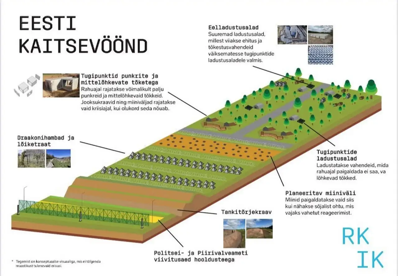 Противотанковая траншея должна быть построена к концу 2027 года. Кроме неё, к тому же сроку планируется возвести и частично укомплектовать личным составом около 600 бункеров. Бюджет на работы, запланированные на 2025-2030 годы, составит €500 млн.