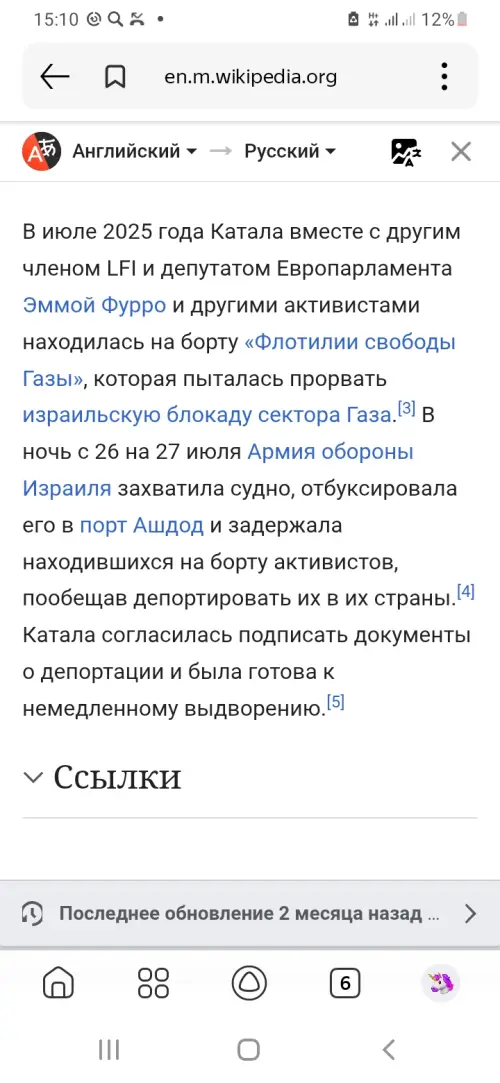 Такое заявление сделала на своей странице в соцсети депутат от партии «Непокорившаяся Франция» Габриэль Катала.