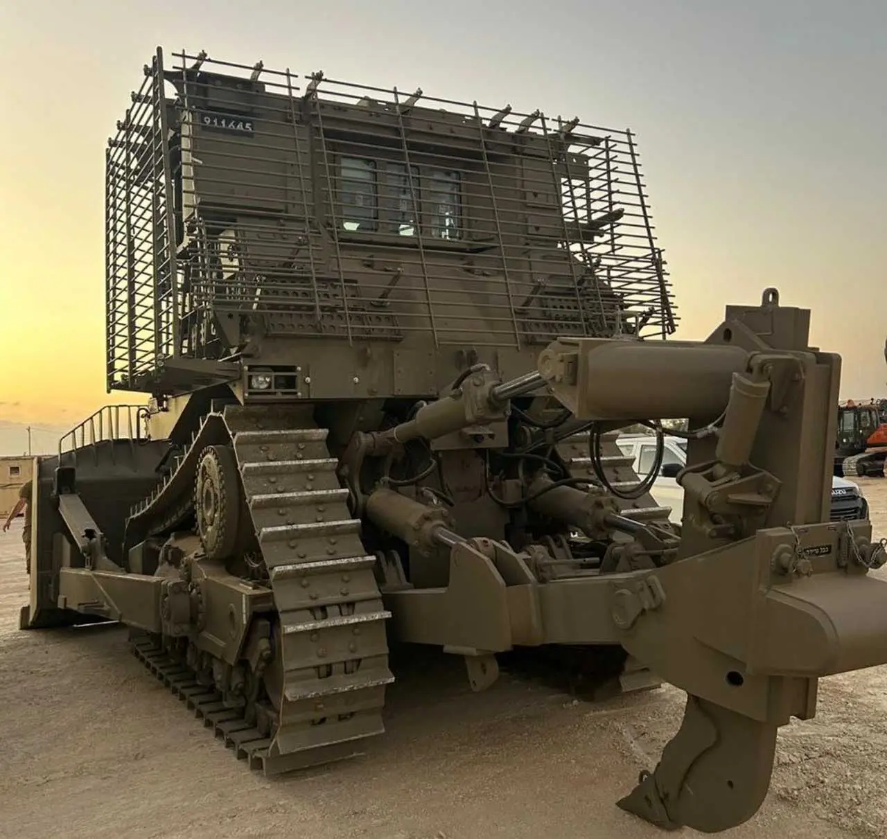 Чтобы снизить риски попадания техники в западню, израильское командование приняло решение направить в сектор Газа специальные бульдозеры. Причём, как видно на фото, такого рода техника для расчистки улиц (а расчистка эта требуется именно для прохода танков и БМП) обшита дополнительной защитой. В частности, на кабинах видны решётчатые экраны, защищающие «бульдозеристов».