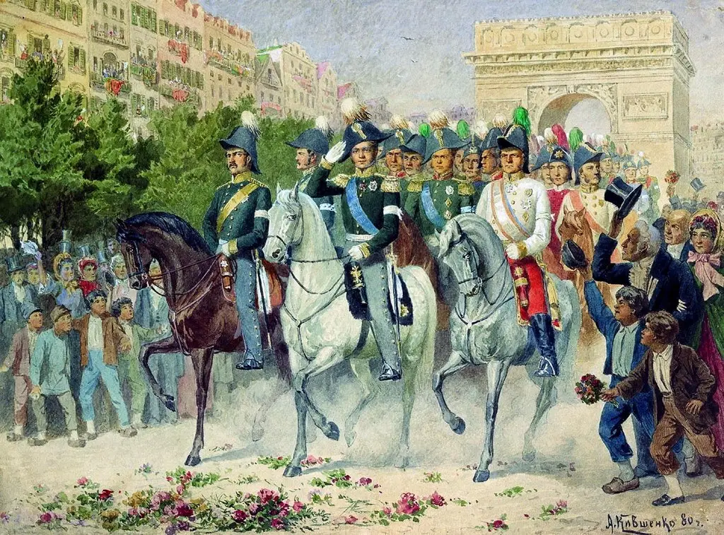 Александр I, вдохновляясь победой над французами в 1812 году, сформировал новую коалицию и нанес окончательное поражение Наполеону. 31 марта 1814 года русская армия вошла в Париж. Александр I переживал в тот день свой звездный час, апогей величия, славы и счастья. Он отомстил за позор Аустерлица, страшный урок Фридланда, гибель Смоленска и пожар Москвы.