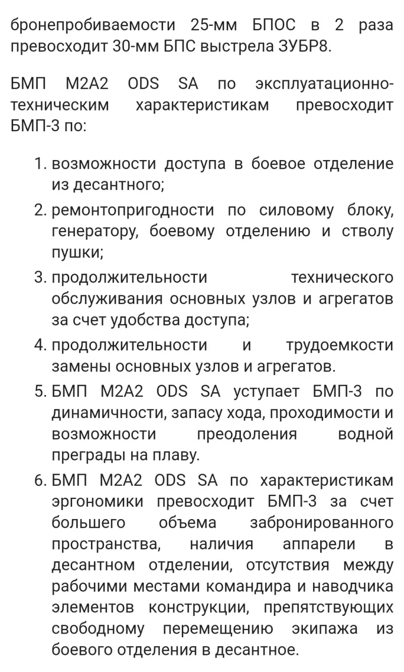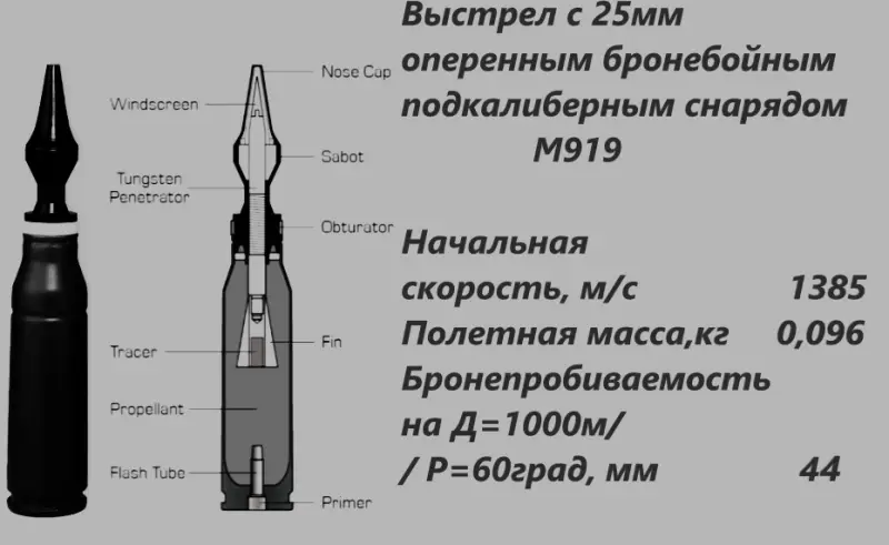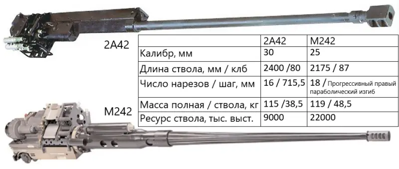 Американский Bushmaster М242, устанавливаемый на Bradley, по данным отечественных испытателей, имеет в два раза большую кучность, чем сходные пушки из России, хотя и отличается меньшим калибром. Во многом это реализуется за счет электрического привода подачи снарядов, обеспечивающего неподвижность деталей орудия в момент выстрела. У отечественных пушек для перезарядки используется энергия отвода пороховых газов. Это очень рачительно – не требуются внешние силы для подачи боеприпаса, но не обеспечивает полной неподвижности узлов пушки во время стрельбы.