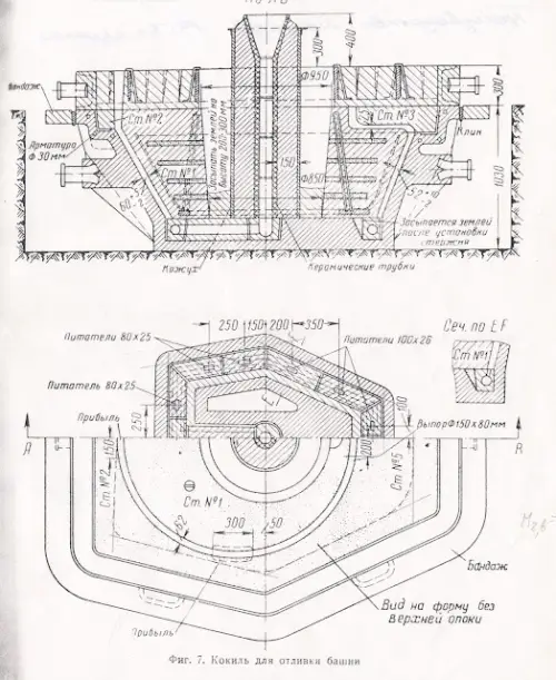 Все эти вопросы было намечено выяснить путём наблюдения за поведением 4–6 деловых плавок, из металла которых было бы отлито не менее 4 башен от каждой.