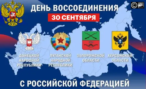 В нашей стране 30 сентября отмечается День воссоединения Донецкой и Луганской Народных Республик, а также Запорожской и Херсонской областей с Российской Федерацией. Это событие, дата которого стала праздничной, имеет огромное историческое значение.