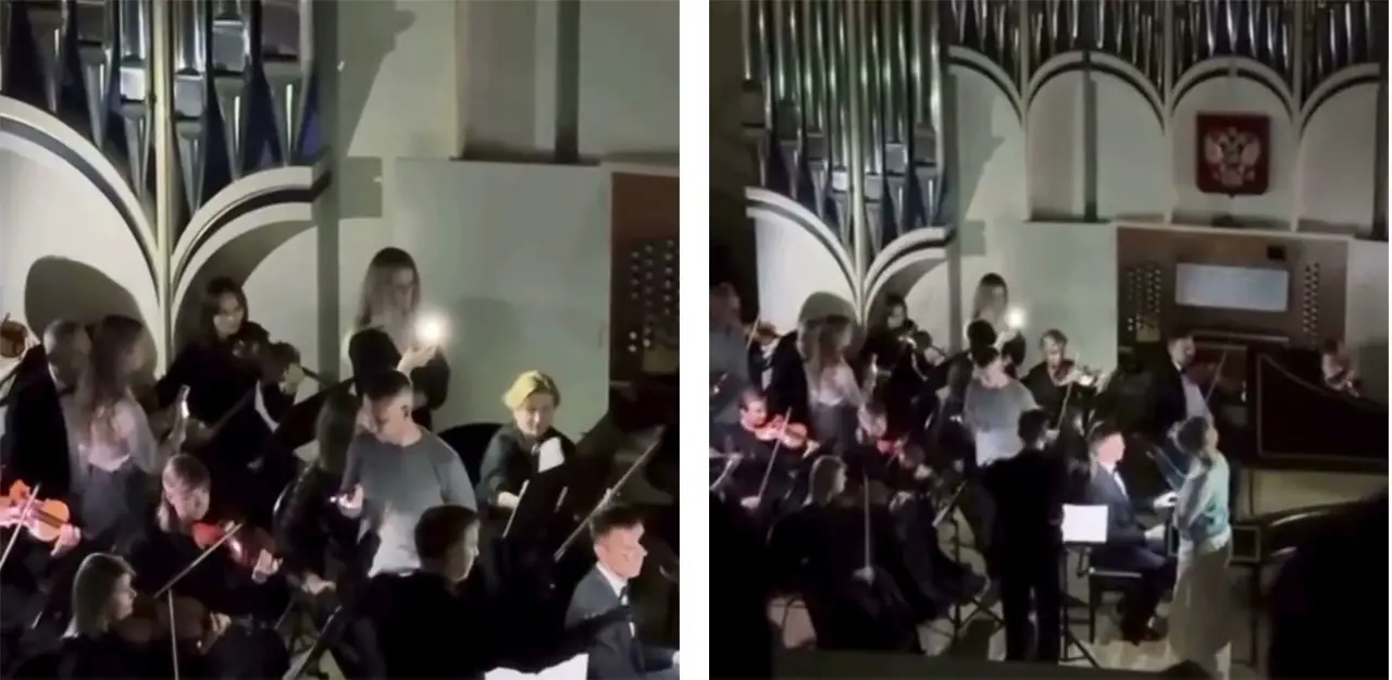 Музыканты, которые дали концерт, его не остановили. Они включили фонарики на мобильных телефонах, подсветив ноты, продолжив исполнять произведения мировой классической музыки.