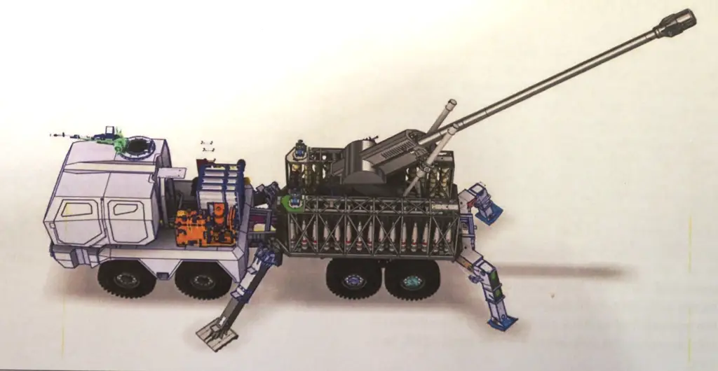 САУ вооружена 155-мм орудием с повышенными характеристиками. Оно имеет нарезной ствол длиной 52 клб с двухкамерным дульным тормозом. Объём каморы — 23 л. Орудие оснащено гидропневматическими противооткатными устройствами, снижающими воздействие на шасси.