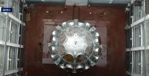 На данную конструкцию, которая расположена в нижней части, будет опираться другое оборудование массой около 6,7 тысячи тонн. Успешная и точная установка сосуда Дьюара открывает возможность для монтажа и наладки других компонентов термоядерного реактора.