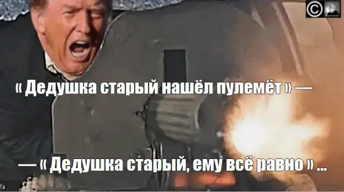 Жители СССР сразу поняли отсыл к стихам из народного творчества того времени, а более современным, думаю, разъяснят в комментариях. Но да, старина Дональд Трамп всё больше напоминает мальчика из жуткого стихотворного сериала времен 70-х годов прошлого века или Михаила Горбачева из анекдота более позднего времени. Был такой, про то, как Горбачев «инновационными» (тогда еще и слова-то такого не было) методами гноил кур. Там фраза была: «Жаль, что перемерли, у меня еще столько новых идей было…»