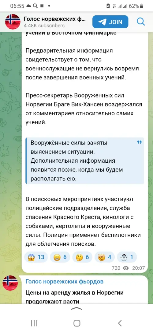 Где и как потерялись сразу десять военных ВС Норвегии, никто не знает, они просто не вернулись из своего сектора, который довольно большой. По крайней мере, так пишет норвежская пресса. Минобороны Норвегии совместно с полицией организовало поисково-спасательную операцию.