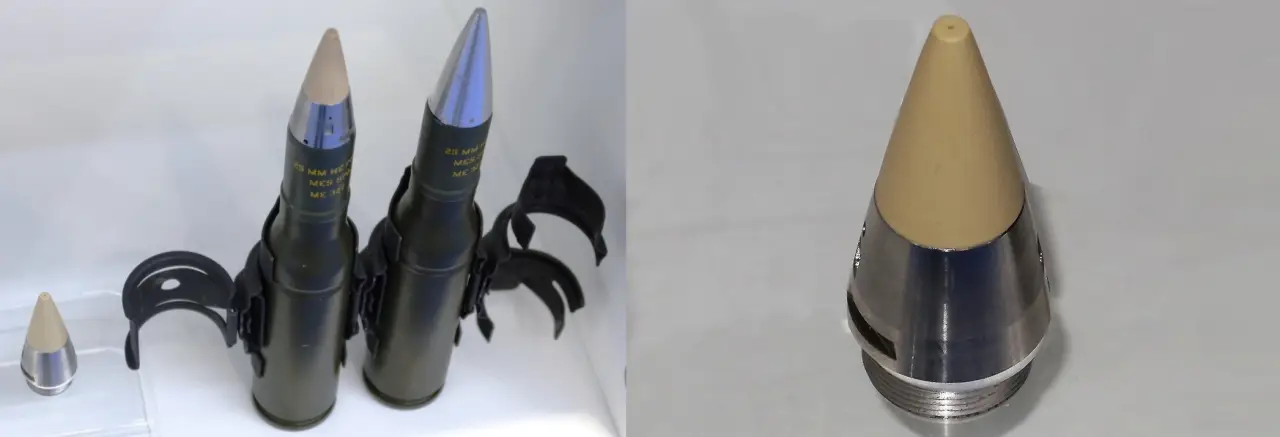Итальянская компания MES представила два своих новых продукта калибра 25×137 мм: осколочно-фугасный снаряд ME 327 и кумулятивный ME 329. Разработчик предлагает использовать их совместно в таких системах с двойной подачей как недавно продемонстрированная Oerlikon KBA, установленная на необитаемую башню CT-025 от Rheinmetall.