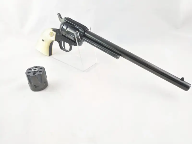 «Кольт» 1895 г. калибра .38, в котором вращение барабана осуществлялось против часовой стрелки. Длина ствола 152 мм.